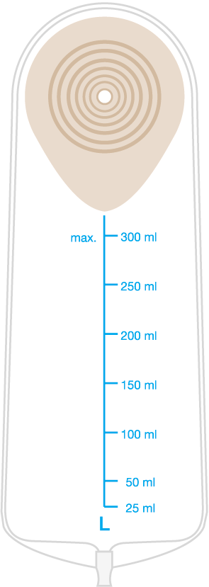 - hydrokolloide Hautschutzhaftflächen - Ausstattung des Beutels mit Rücklaufsperre - augedruckte Skala zur Erfassung des Exsudats - sicheres Auslassventil, Adapter für weitere Auffangbehälter - sterile Einzelverpackung